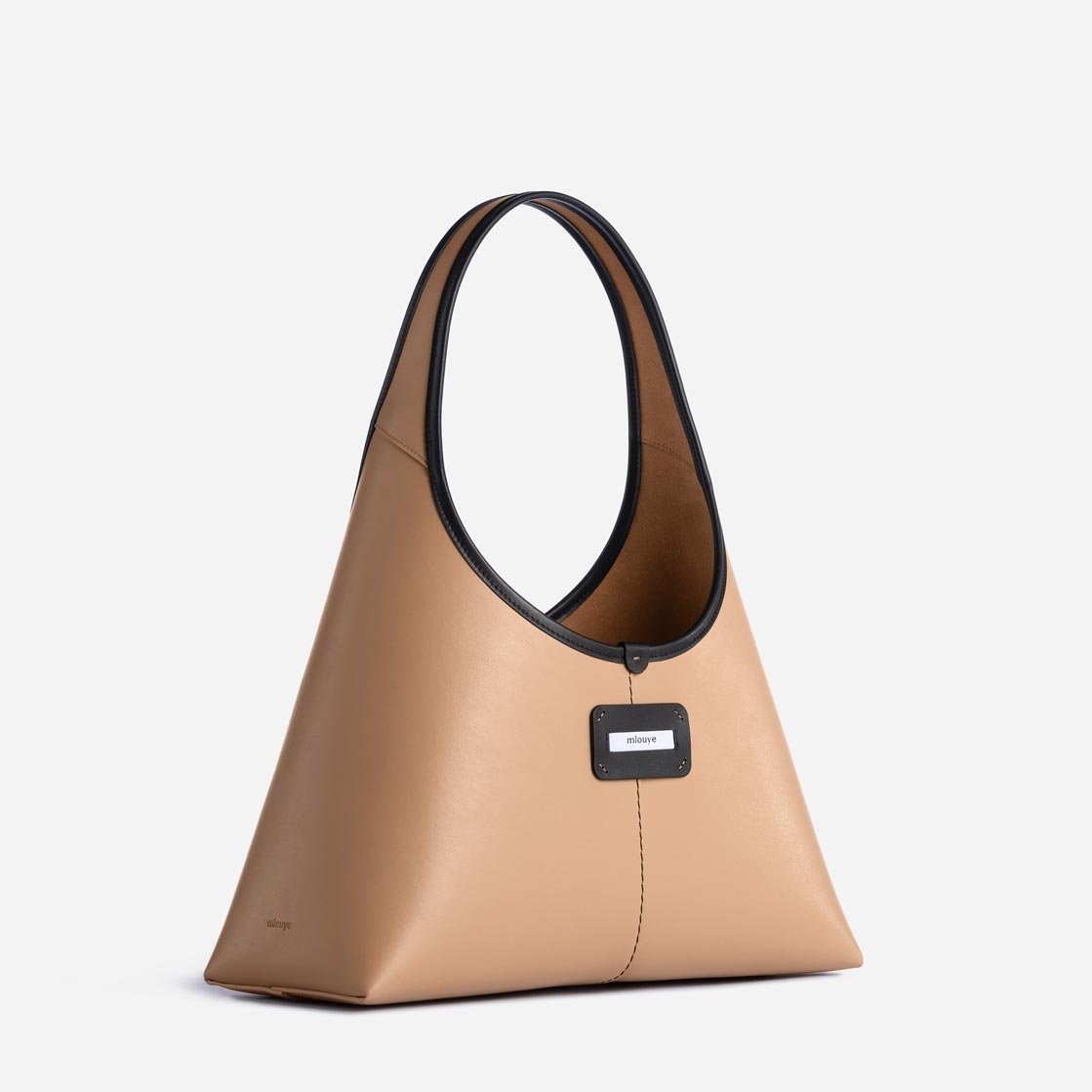 Versatile and minimally designed in a curved silhouette. Hobo is made from smooth Italian leather detailed with contrasting black leather trim. Sleek interior is lined in micro suede textile. The stud closure at the top keeps your belongings secure. It comes with a detachable pouch, which is perfect for securing smaller essentials. This medium sized version is large enough to hold all of your essentials, plus a book or tablet.